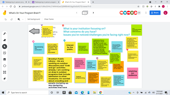 They encouraged us to brainstorm things to keep in mind when we redesign our in-person programs.